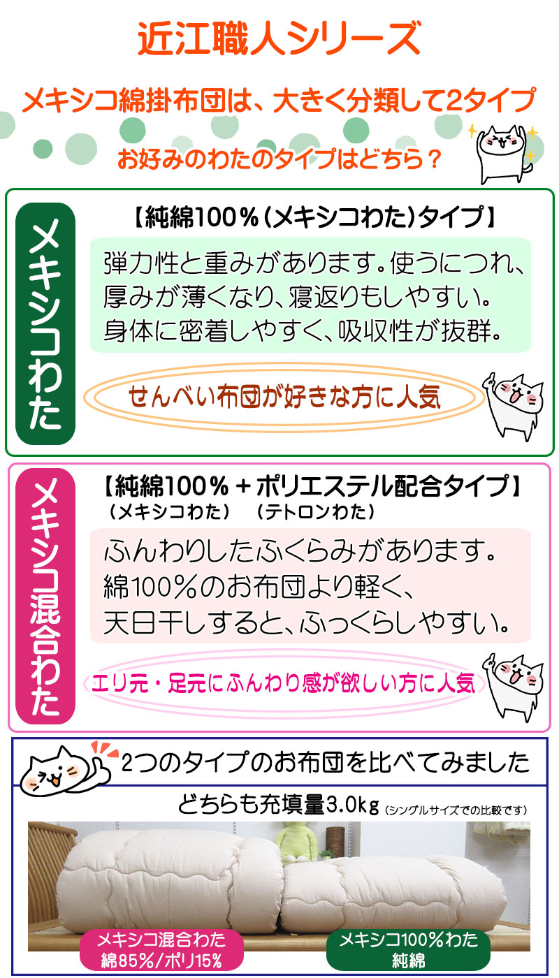 選べる3タイプの充填量! メキシコ綿100% 近江職人