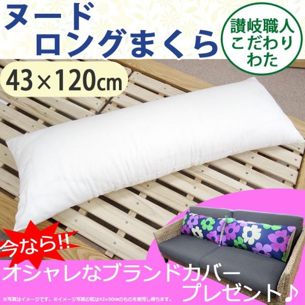 送料無料 オシャレカバー付き ヌードロングまくら さぬき職人こだわりのわた 43×120cm マルチクッション/ロング枕/抱き枕