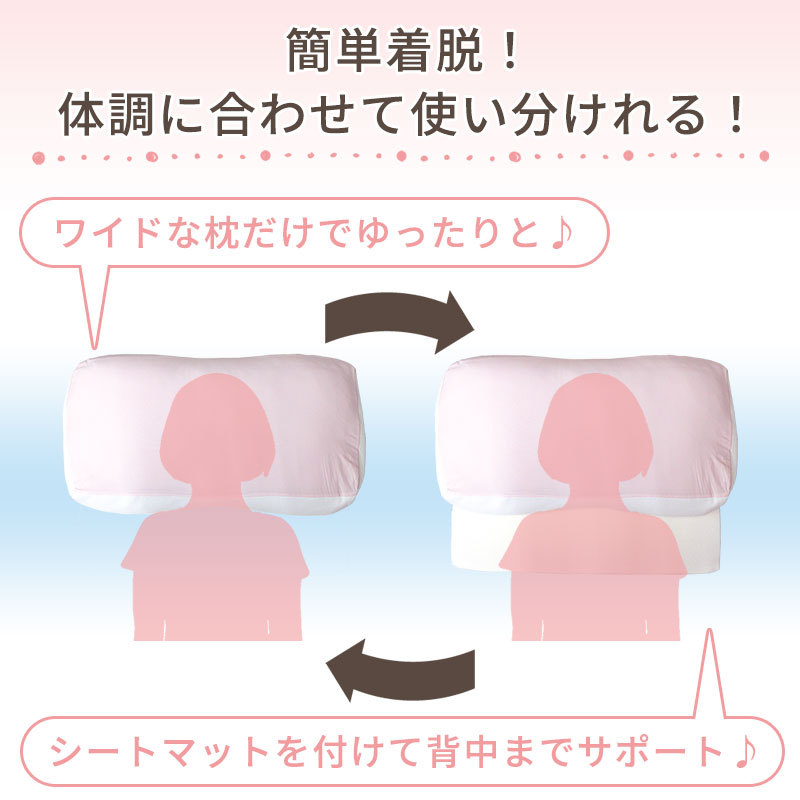 体調に合わせて使い分けれる! 2WAYまくら ワイドサイズ 50×70cm 角度をつけれるシートマット付き ボディピロー 肩こり 首こり 背こり デカい やわらかい