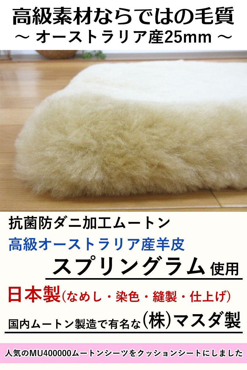 京都発 ファンディーナ 日本製 ムートンシーツクッション 40×40cm オーストラリア産スプリングラム 毛足25mm 天然 床ズレ防止 マスダ 抗菌防ダニ加工 介護
