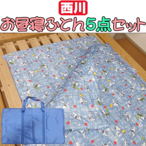 西川 スヌーピーコミック お昼寝ふとん5点セット/ヴィンテージ/保育園/幼稚園/西川製/入園準備/手提げバッグ付き/布団/セット/キッズ/子供/SALE/セール