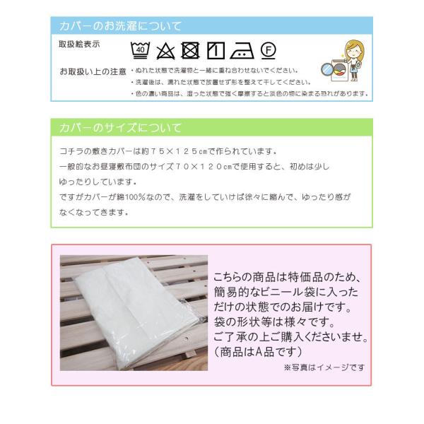 特価品 お昼寝 敷きふとんカバー 約75×125cm 綿100% 無地 ベージュ ファスナータイプ 日本製 洗い替え コットン 敷き布団カバー 敷きカバー