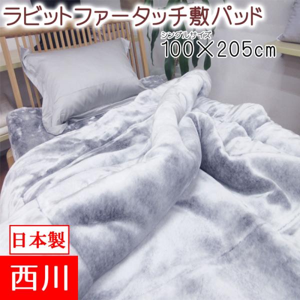 京都西川 日本製 高級ドビー織りワッフル敷きパッド シングルサイズ 100×205cm 綿100%/ポコポコ/国産/コットン/4隅ゴム付/天然素材/夏用/ワッフル/西川