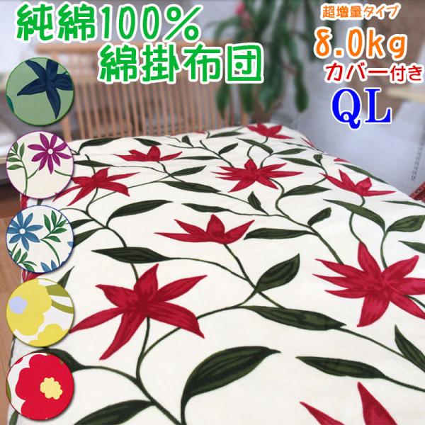 今だけ!シビラ掛カバー付き 純綿100% 重みのある綿掛布団 8ヵ所ループ付き ダブルロング 7.0kg 超増量タイプ 掛布団 綿100%/日本製/いつきのふとん