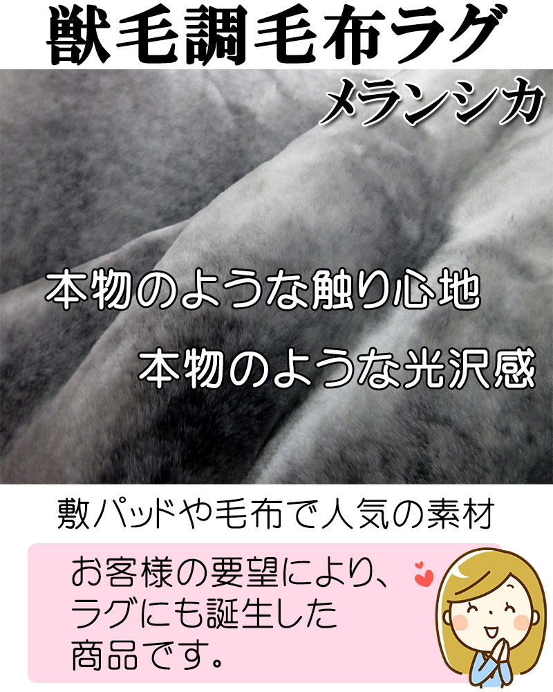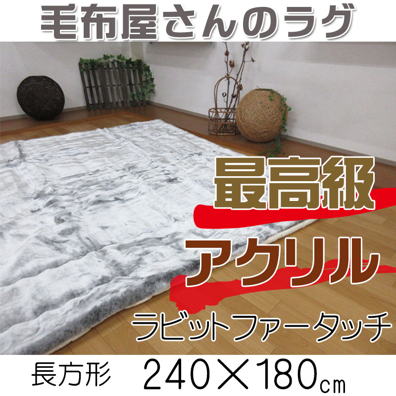 最高級アクリルラグ ラビットファータッチ 長方形 240×180cm 日本製 メランシカ調/ふわふわ/手洗い/ズレにくい/四隅ゴム/あったか/無地/マット/なめらか/秋冬