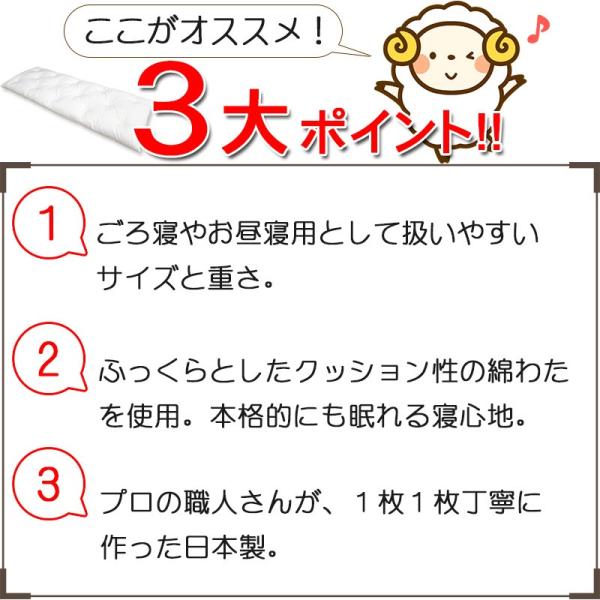 大人用お昼寝・ごろ寝布団 わたごろ ごろ寝マット 約75×180cm 側生地綿100%/ごろ寝座布団/長座布団/和ふとん プロの職人手作り 日本製/お昼寝布団/丸めれる