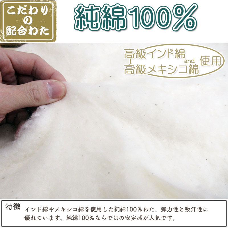 インド綿100% 超増量タイプ 綿わた敷布団 約100×210cm シングルロング 8.0kg 純綿/職人/手作り/日本製/和ふとん/綿わた/敷き布団/和布団