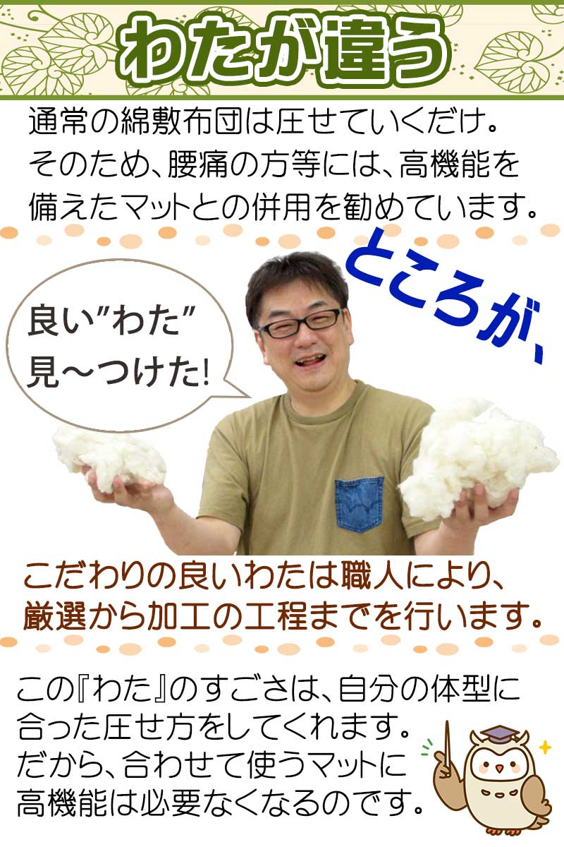 純綿100% 綿わた敷布団 約100×200cm シングル 6.0kg 純綿/職人/手作り/日本製/和ふとん/綿わた/敷き布団/和布団/綿/丸めれる/わた/和式 綿わた/綿敷布団