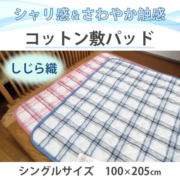 在庫処分品!50%オフ 綿しじら 敷きパッド シングル 100×205cm しじら織 涼感 さわやか コットン 天然繊維 自然素材 夏用 オールシーズン シボ 洗える