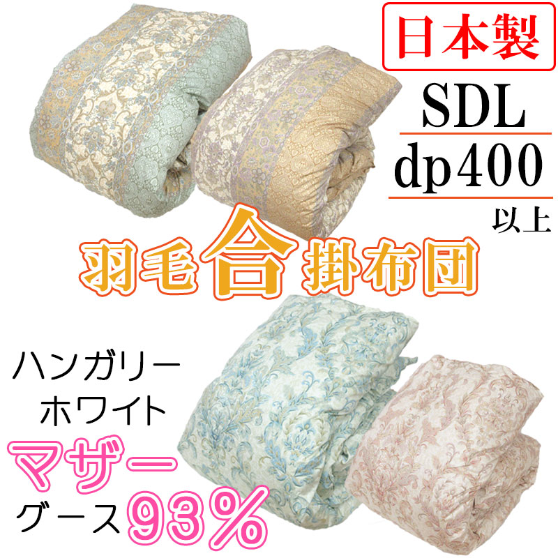 問屋在庫処分品 羽毛合掛布団 ハンガリーマザーグース93% セミダブルロング 170×210cm 1.0kg ホワイトマザー 80サテン 日本製 甲州羽毛