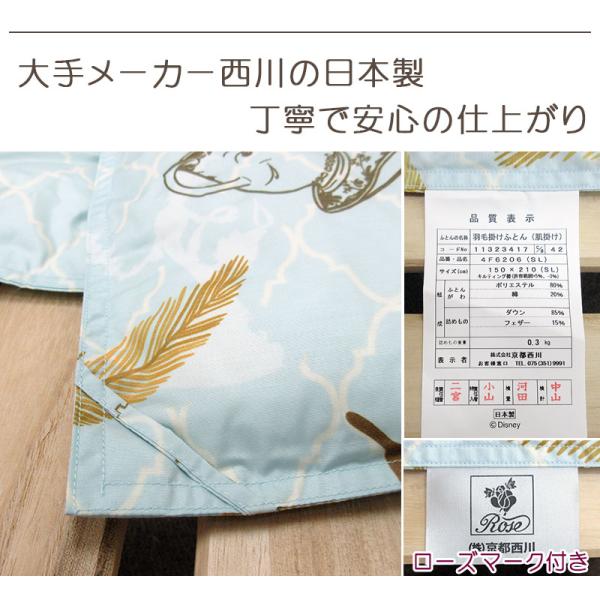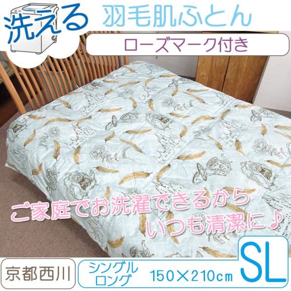 【京都西川】【日本製】洗える 羽毛肌布団 ダウン85% 0.3kg シングルロング ローズ ダウンケット ご家庭で洗濯できるからいつも清潔に!