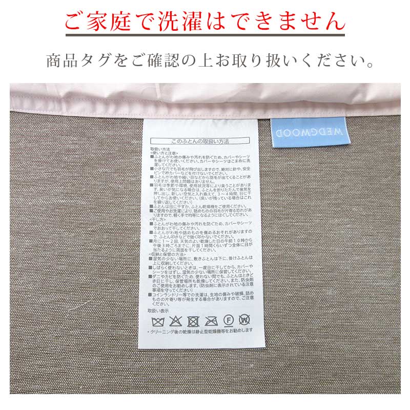 西川 羽毛掛けふとん 合掛け 春・秋用 ウェッジウッド ウォッシャブル シングル 150×210cm ダウン70% 0.7kg WW7620 合布団 KA01251014 WEDGWOOD 日本製