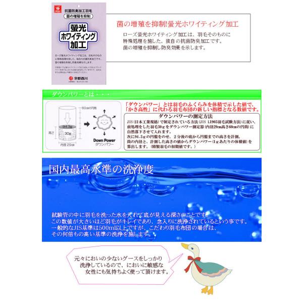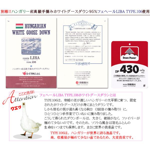 30%off 京都西川 LIBA300 羽毛肌布団 セミダブル ハンガリー産ホワイトグース95% マザーグース ブライダル用単品/ヴァレンス/二層/三層 ローズ羽毛