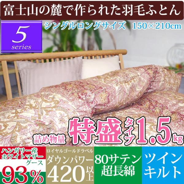 【特盛】1.5kg 羽毛ふとん ハンガリー産 ホワイトマザーグース ダウン93% (シングル・150×210) ロイヤルゴールドラベル ツインキルト