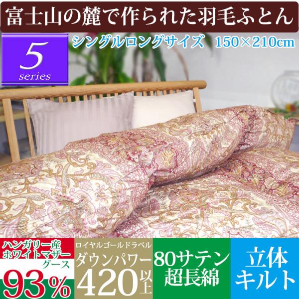 甲州産【5シリーズ・立体Sマザー93】シングル ハンガリー産ホワイトマザーグース93% 立体キルト
