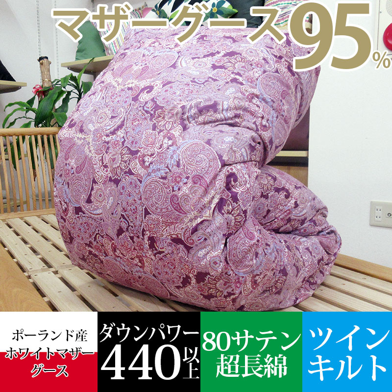 サンモト 羽毛布団 ポーランド産ホワイトマザーグースダウン95% シングルロング 150×210cm ツインキルト 日本製 1.1kg 1.2kg 1.3kg 1.4kg 1.5kg 超長綿 綿100%