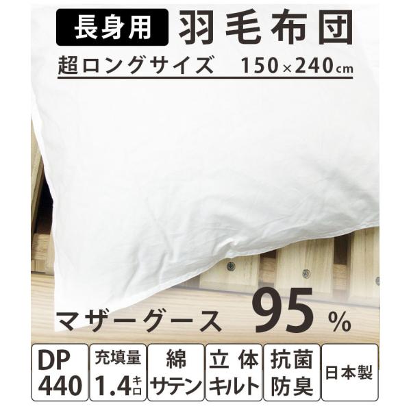 【長身用 240cm】羽毛布団 ポーランド産 ホワイトマザーグース95% 超シングルロング 150×240cm ダウンパワー440以上 1.4kg