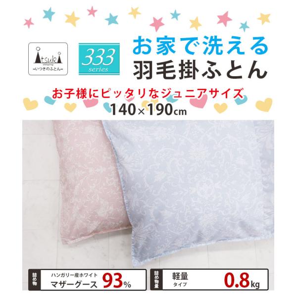 ジュニア用 洗える 羽毛布団 マザーグース93% 0.8kg 140×190cm コンパクトサイズ 【ジュニアサイズ】ロイヤルゴールドラベル DP400以上