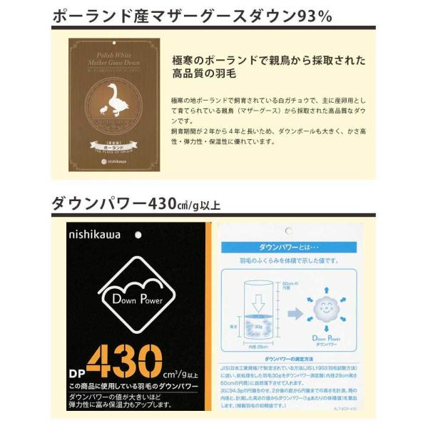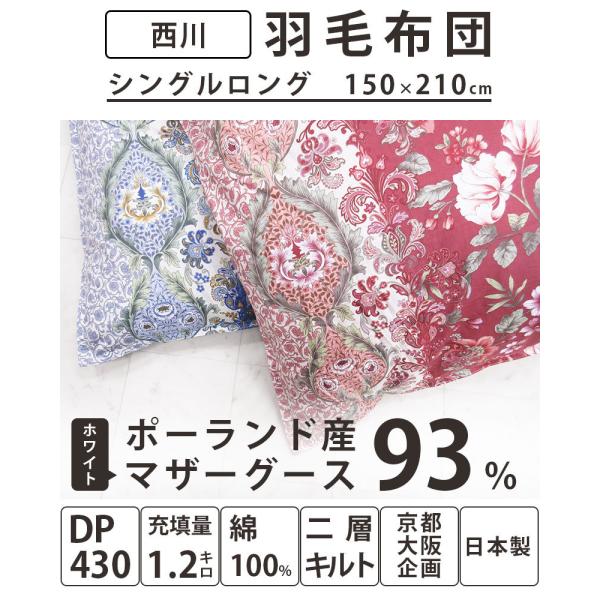 新入荷! 西川カバー付き 西川 羽毛布団 ポーランド産ホワイトマザーグース93% シングルロング 1.2kg ツインキルト DP430 80サテン超長綿 150×210