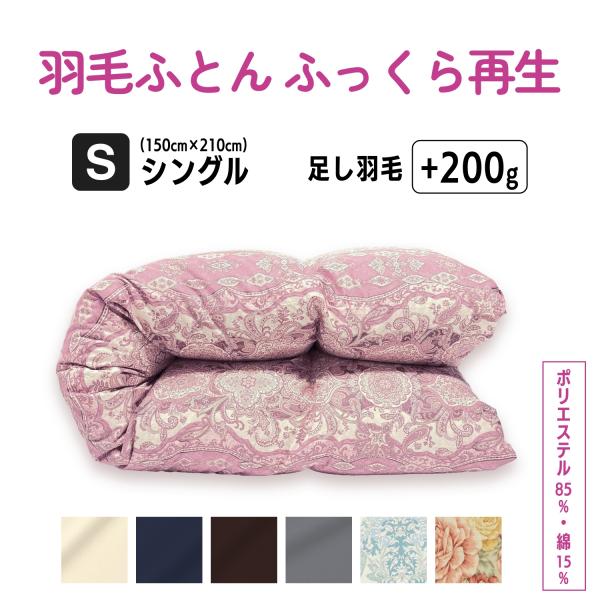 羽毛布団 打ち直し リフォーム シングル仕上げ 綿100% 足し羽毛 羽毛ふとん クリーニング サイズ変更