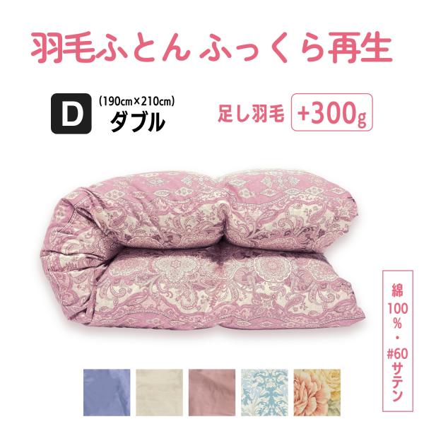 掛け布団 ダブル 仕上げ 羽毛 ふとん リフォーム 打ち直しクリーニング|羽毛布団 ふっくら 再生 足し羽毛 綿100%(60サテン)