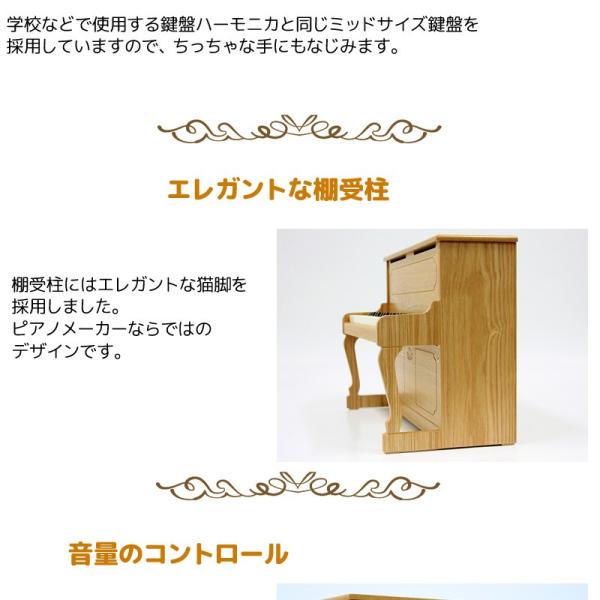学校などで使用する鍵盤ハーモニカと同じミッドサイズ鍵盤を採用していますので、ちっちゃな手にもなじみます。