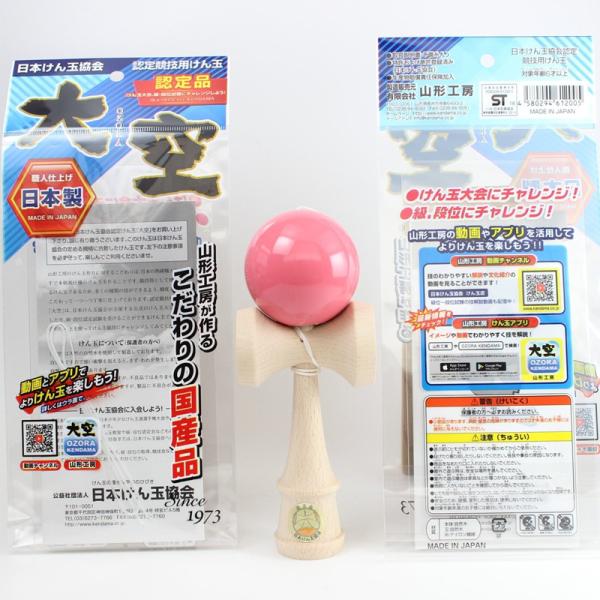 山形工房 日本製 競技用けん玉 大空 単色(ピンク) 予備糸付き