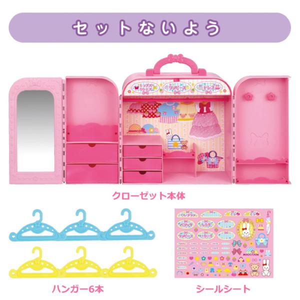 お洋服はもちろん、バックや傘、靴、小物までいっぱい収納できるからきせかえ遊びがぐっと楽しくなります。