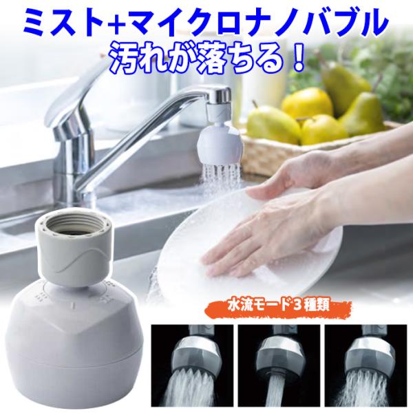節水 蛇口につける キッチン シャワー 手に優しいミストのマイクロナノバブル 3モード切替 首振り バブリーキッチンミスト SV24W ホワイト 節水 蛇口 送料無料