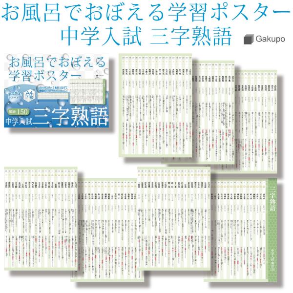 Gakupo お風呂でおぼえる学習ポスター 中学入試 三字熟語 頻出150 A4ポスター7枚セット 中学受験 国語 防水 教材