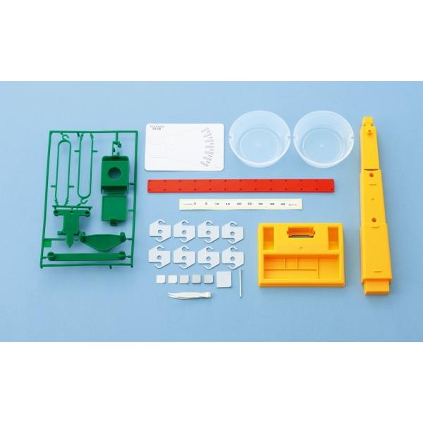 ・てこの働きや仕組み、てんぴんの取り扱い方法の学習が楽しくできる材料をセットしています。