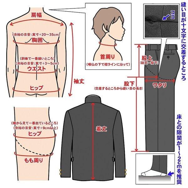 学ラン 学生服 上下 日本製 全国標準型 超黒 ハイグレード 丈夫でホコリがつきにくい 東レ正式許諾品 A体 B体 ラウンド襟 ワンタック併売 男子 裾上げテープ
