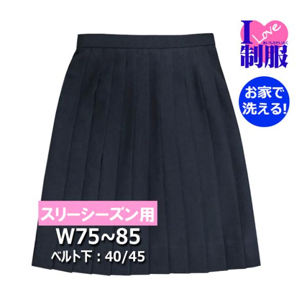 制服 スカート 紺 24本ヒダ スリーシーズン用 大きいサイズ W75/W80/W85 丈40/45センチ ポリ100%