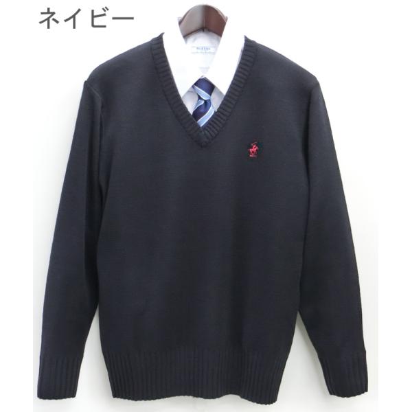 BHPCのポイント刺しゅう入ったVネックセーターです。
