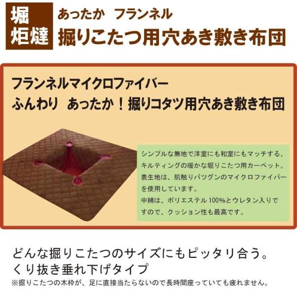 フランネル 掘りごたつ 敷き布団 長方形 190×240cm 切込タイプ 穴あき 開口部 90×120cm 堀こたつ用 敷布団 堀こたつ カーペット 堀コタツ用 ラグ