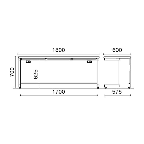 ●材質/天板=メラミン化粧板(ポストフォーム加工)、エッジ=ABS、幕板・本体・脚部=鋼板(樹脂焼付塗装)