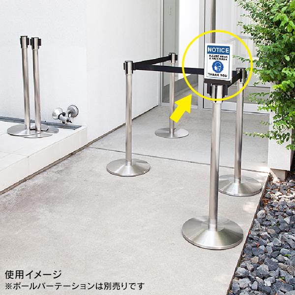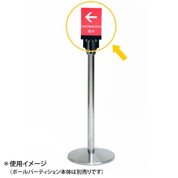 ポールパーテーション専用の案内板。ボードにA5サイズの用紙を挟み、ポールパーテーション(別売)のヘッド部分に取り付けて行列の誘導やご案内等にご利用いただけます。