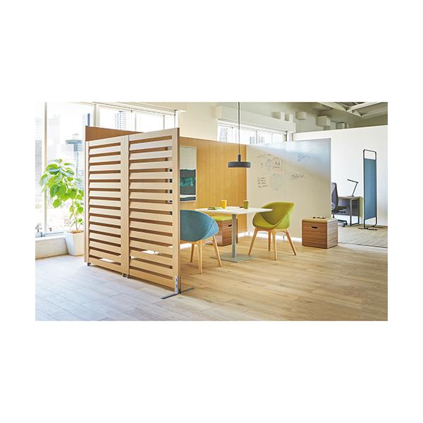 面倒な連結パーツ選びの必要がない、落ち着いた木目調のパーティション「SPII パネル」専用オプション、安定脚両側用/2本入。