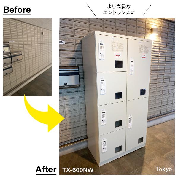 TX-600NW(専任お届設置・必要小物も)日本製 電源&メンテナンス不要 宅配ボックス マンション用 荷物窓が有効 空占有防止 集合住宅 ホワイト 65kg