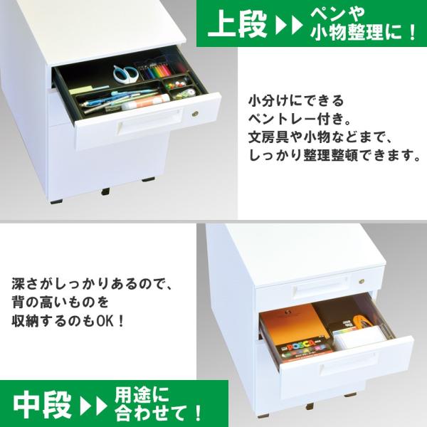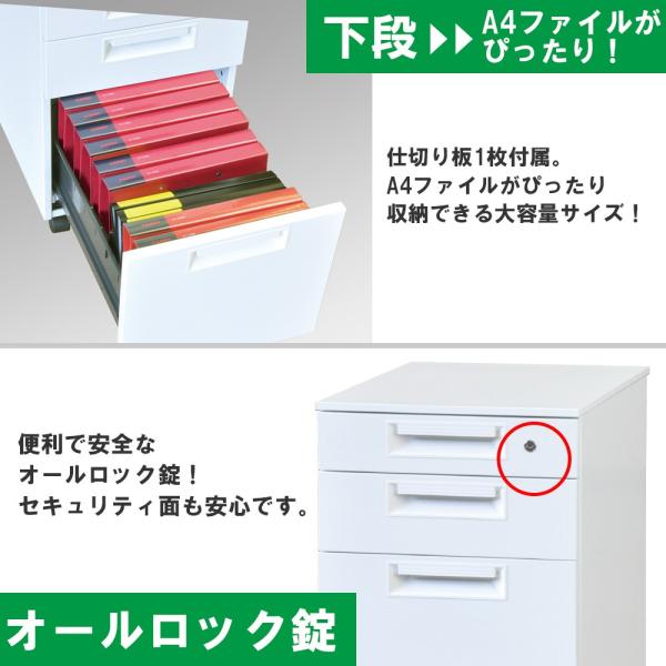 サイドキャビネット デスクワゴン 3段 鍵付き スチールワゴン キャビネット 収納ワゴン オフィスワゴン SH 幅396 奥行577 高さ603mm