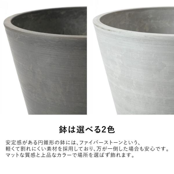 花言葉は「永遠の幸せ」。大きな葉と幹のうねりが魅力のフィカス・アルテシマは、艶やかで明るいグリーンの葉が生き生きとした印象で、インテリアグリーンとして人気があります。植物を引き立てるすっきりシンプルな形状の鉢とコーディネートしました。ラテン語で「最も背が高い」という意味を持つ名前の通り、存在感たっぷりの佇まいは、窓辺やコーナースペースなどへのアクセントとしてオフィスや店舗ディスプレイにおすすめです。鉢グレー 435868_鉢ホワイト 435869