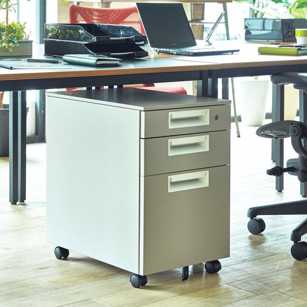 サイドワゴン 3段 鍵付き キャスター付き ワゴン スチールワゴン キャビネット デスクワゴン ペールカラー SH