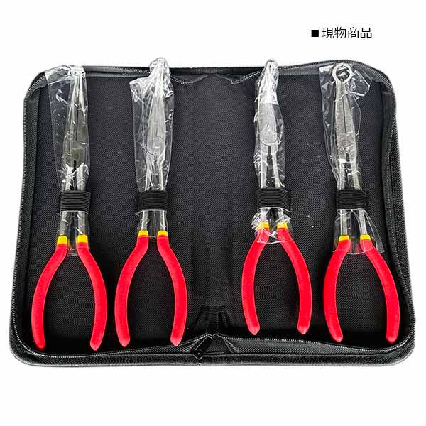 このロングリーチプライヤーセットは、多様な用途に対応するための4種類のプライヤーが含まれており、さまざまな作業シーンで活躍します。以下に各プライヤーの詳細を説明します。