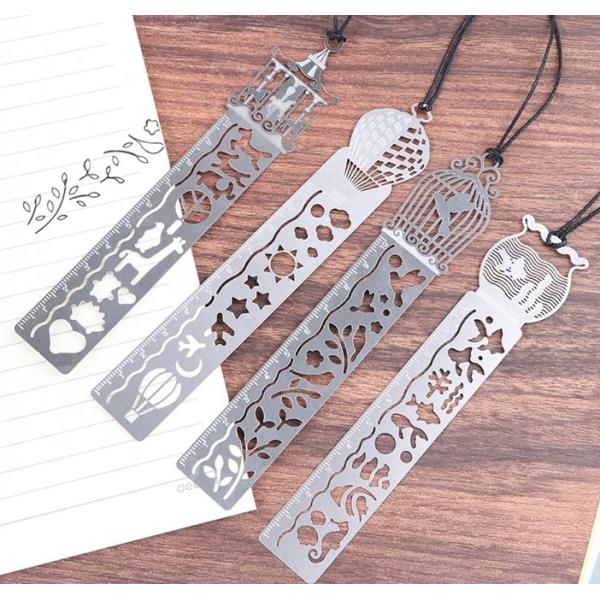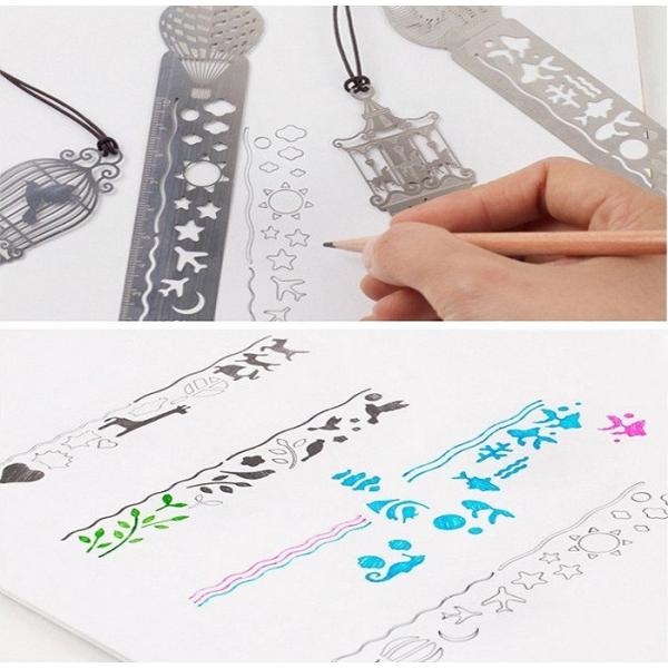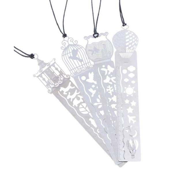 しおり 栞 シンプル 金属 多機能 ブックマーク 4種類 セット 測れる 遊べる 定規 お絵描き テンプレート 便利 おしゃれ