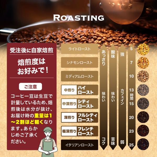 焙煎度は「中煎り・中深煎り・深煎り・極深煎り」の4種類からお選びいただけます。