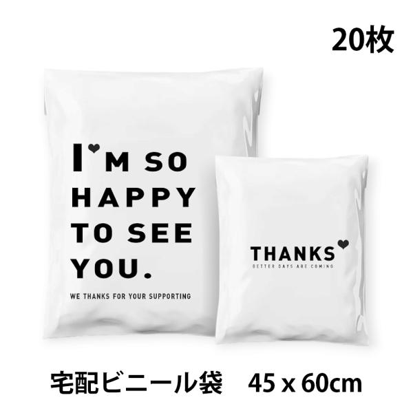 20枚 宅配ビニール袋 45cm×60cm シールテープ付き封筒 梱包用資材 クリックポスト ゆうパケット らくらくメルカリ便に 可愛い