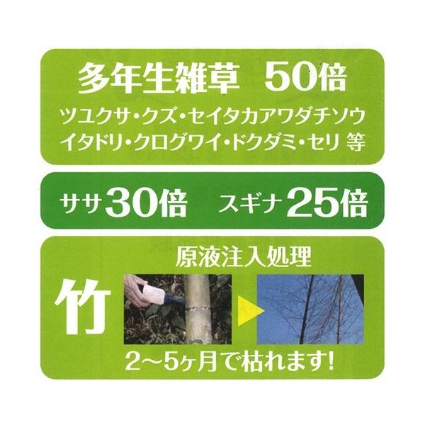 一年生雑草から多年生雑草、ススキ・ササ類まで、葉から入って根まで枯らすので、除草効果が長く確実です