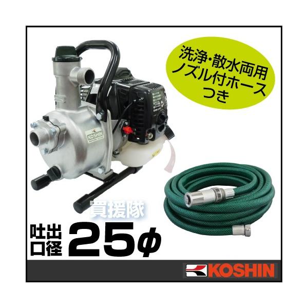 (送料無料)工進 エンジンポンプ SEV-25L(2サイクルエンジン)とホース(ノズル付)のセット