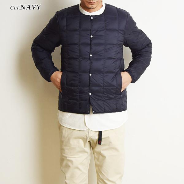TAION タイオン インナーダウン ジャケット クルーネック ボタン メンズ 軽量 防寒 あたたかい スナップボタン 丸首 TAION-104