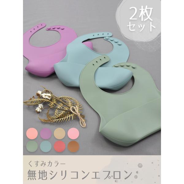 無地 お食事エプロン シリコン シリコンビブ 2枚セット 離乳食 入園準備 お食事用エプロン 防水 ポケット 袖なし 赤ちゃんエプロン